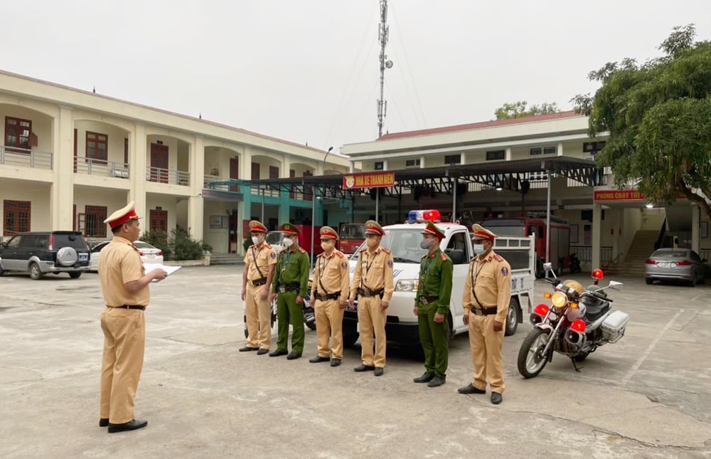 Công an huyện Phúc Thọ trong một buổi tăng cường kiểm tra, xử lý vi phạm về trật tự an toàn giao thông, tháng 4/2022. (Ảnh minh họa: Tuổi trẻ Công an huyện Phúc Thọ/Facebook)