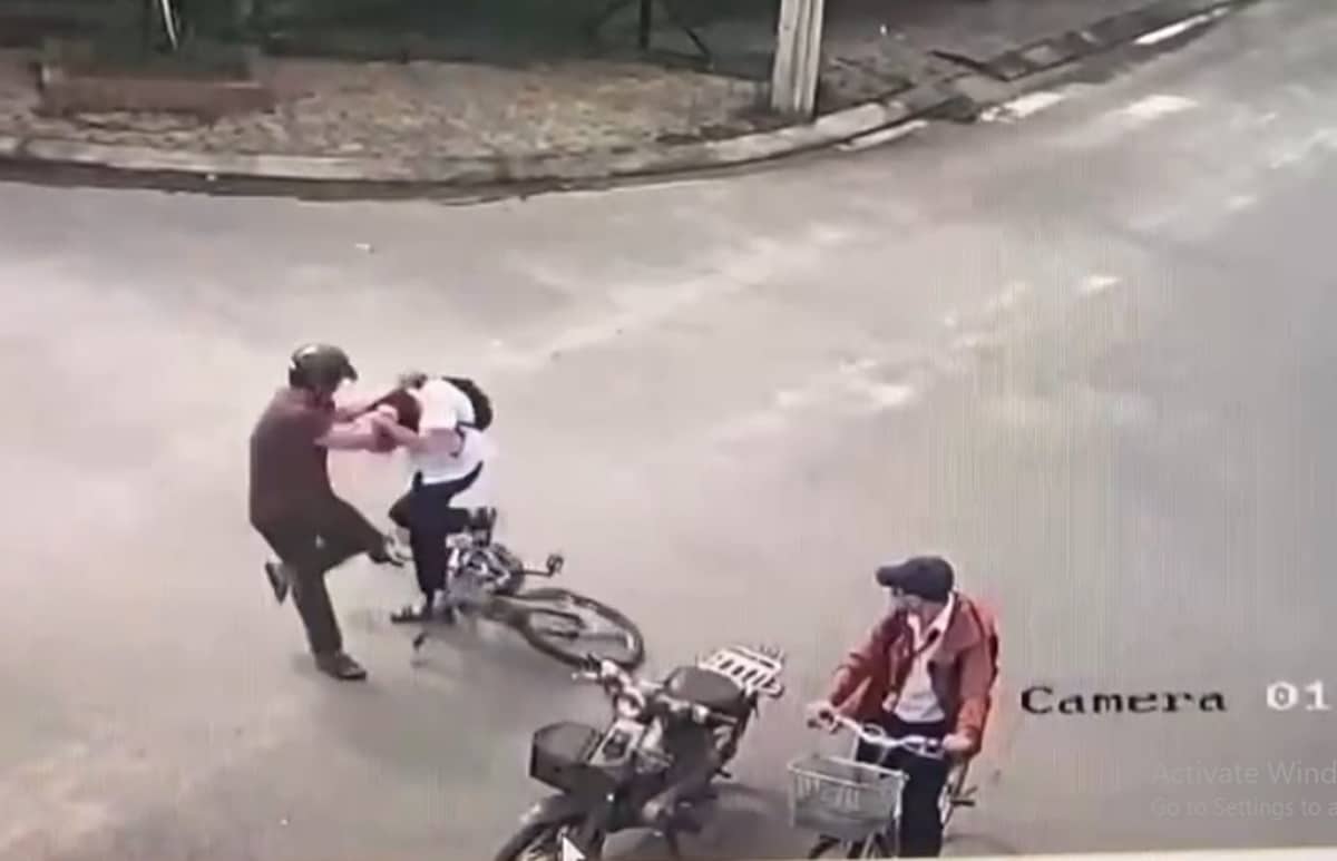 Vừa rời cổng trường được 800m, một học sinh bị cha của bạn học chặn đánh tới tấp vào nhiều vị trí hiểm như đầu, mặt… Hình ảnh trích xuất từ camera nhà dân cho thấy học sinh bị đánh rất nặng, bị lên gối, thúc cùi chỏ.