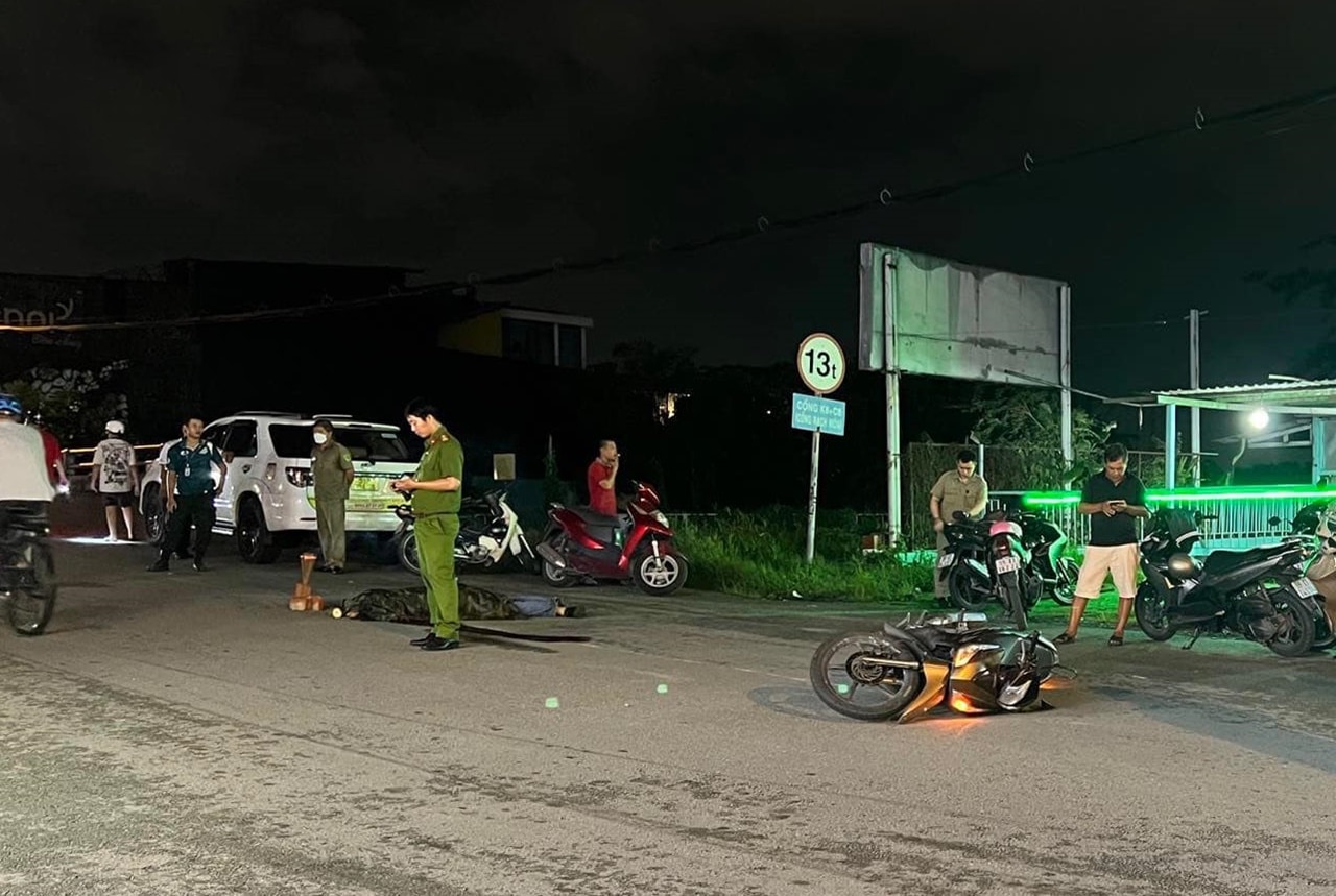 Tại hiện trường, xe máy vẫn sáng đèn pha, nằm cách thi thể nạn nhân khoảng 2m. (Ảnh: Tôi Là Dân Thủ Đức/Facebook)