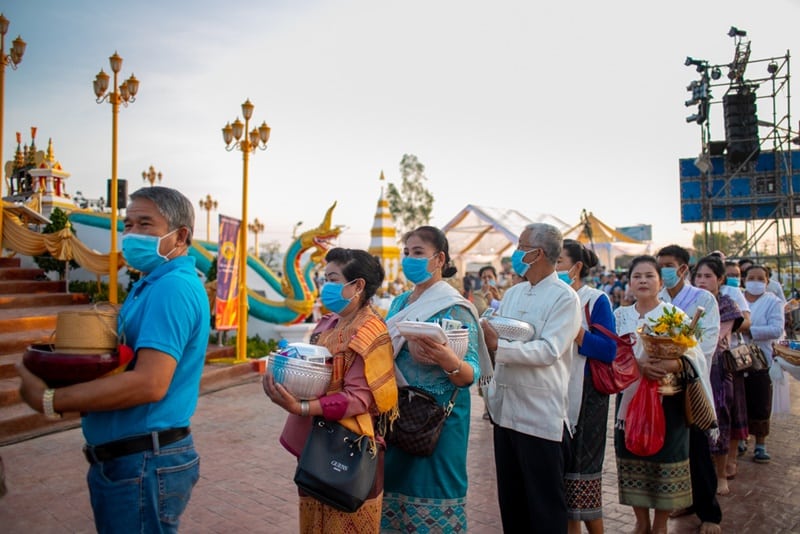 Đoàn người đeo khẩu trang xếp hàng trong lễ bố thí tại công viên Saysetthathirath, Viêng Chăn, Lào, ngày 16/1/2021. (Ảnh minh họa: Xarng phomjampa/Shutterstock)