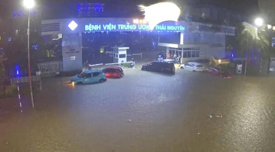 Đặc biệt, tại TP. Thái Nguyên có mưa lớn trong khoảng 3 giờ đồng hồ tối 22/8 khiến nhiều tuyến phố, đường Minh Cầu, ngã tư Lương Ngọc Quyến – Phan Đình Phùng, ngã tư Hoàng Gia, khu vực cổng Bệnh viện Trung ương Thái Nguyên, ngã ba Bắc Nam, đường Bến Tượng… bị ngập sâu, giao thông tê liệt.