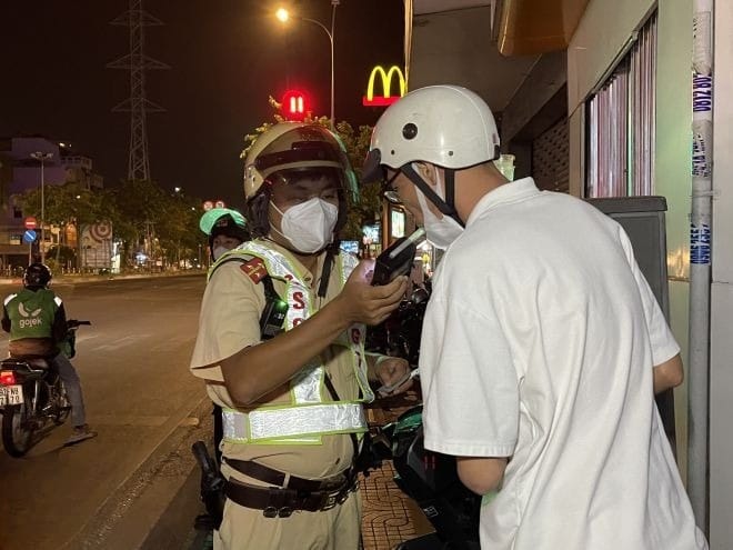 Một người dân TP.HCM đang bị kiểm tra nồng độ cồn. (Ảnh: csgt.vn)