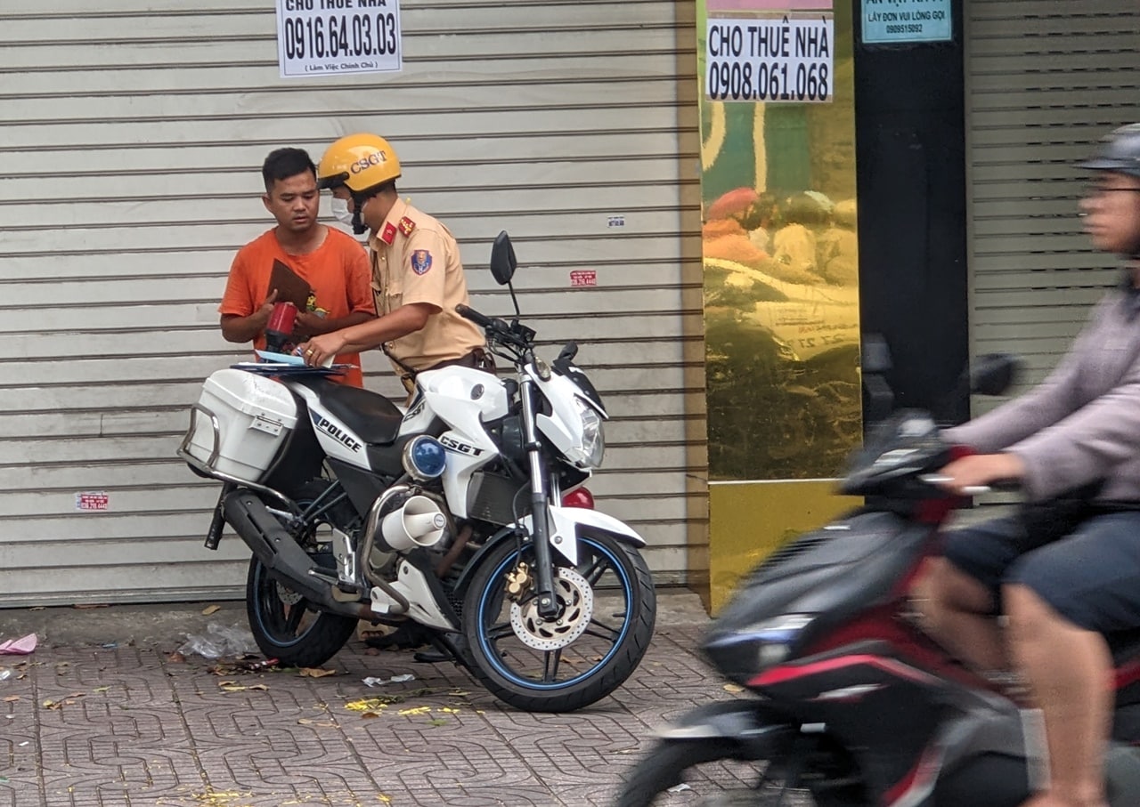 Cảnh sát giao thông xử phạt một tài xế vi phạm an toàn giao thông, năm 2023. (Ảnh minh họa: CTV/Trí Thức Việt Nam)