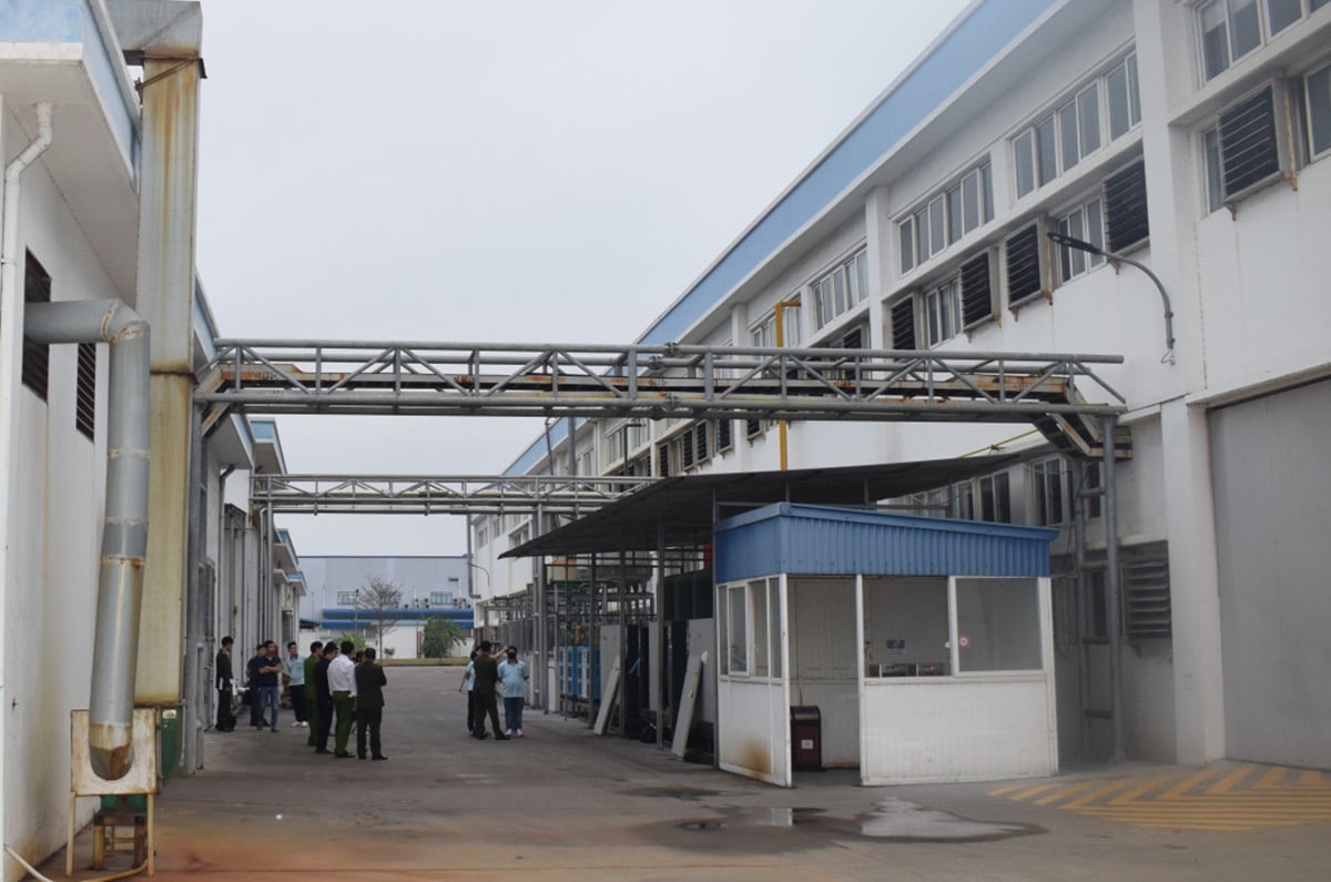Khoảng 9h sáng, một số công nhân đang làm việc tại khu vực dây chuyền bơm hơi, dán da, dán tem có biểu hiện đau đầu, chóng mặt, tức ngực, khó thở, không khí có “mùi hôi” (nghi mùi dầu công nghiệp bị cháy).