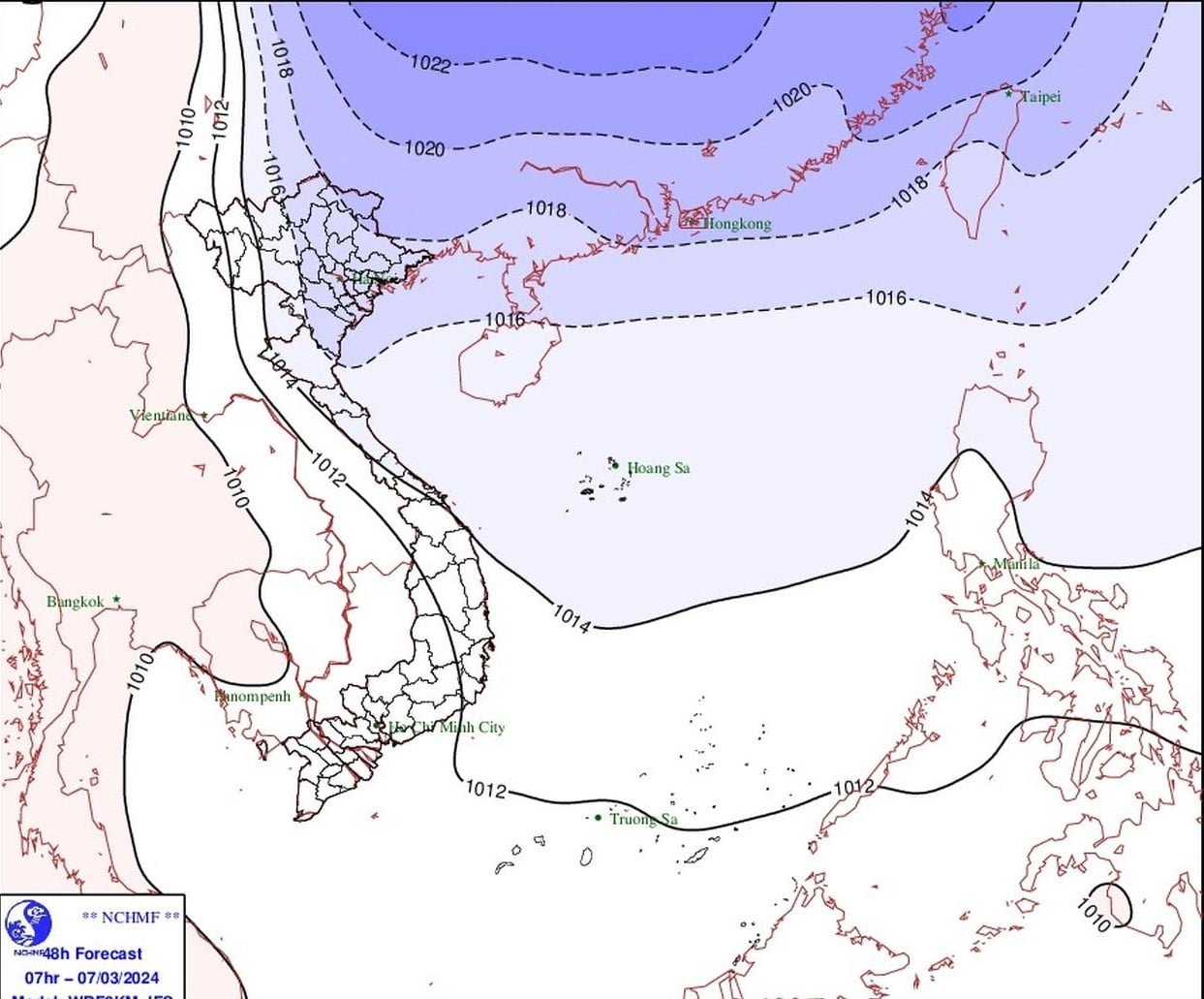 Trên biển, từ chiều tối ngày 6/3, ở vịnh Bắc Bộ gió Đông Bắc mạnh dần lên cấp 5, có lúc cấp 6, giật cấp 7-8, biển động, sóng biển cao từ 1,5-2,5m. Từ đêm 6/3 khu vực Bắc Biển Đông gió Đông Bắc mạnh dần lên cấp 6, giật cấp 7-8, biển động, sóng biển cao từ 2,0-3,5m.