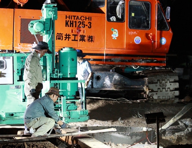 Tiếp đến, lực lượng cứu nạn tiến hành phương án dùng máy khoan làm mềm đất ở khu vực xung quanh, rồi dùng cẩu kéo ống cọc bê tông lên. Nhưng thiết bị lúc này chỉ có thể huy động là máy khoan giếng, khiến tiến độ quá chậm.