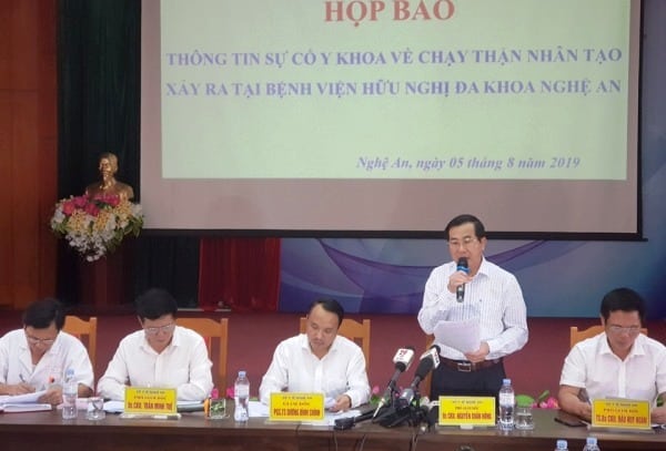 Ngày 5/8, Sở Y tế Nghệ An đã tổ chức họp báo thông tin sự cố y khoa về chạy thận nhân tạo xảy ra tại Bệnh viện Hữu nghị Đa khoa Nghệ An.