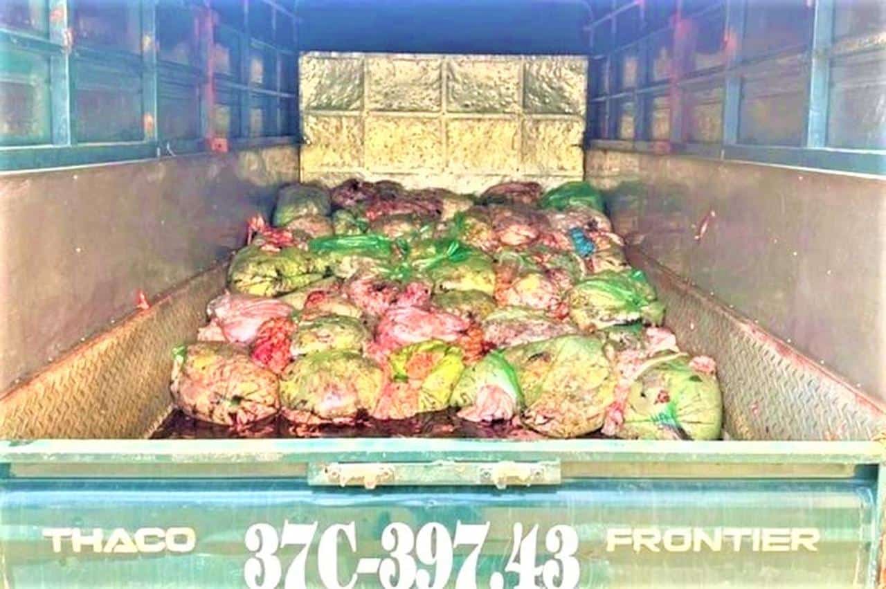Lực lượng chức năng Nghệ An phát hiện 1,3 tấn nội tạng động vật biến chất, không hóa đơn, chứng từ, không giấy kiểm dịch.