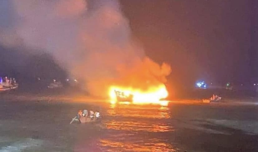 Nghệ An: Tàu cá bốc cháy ngoài khơi, 10 thuyền viên trôi dạt 26 tiếng trên biển