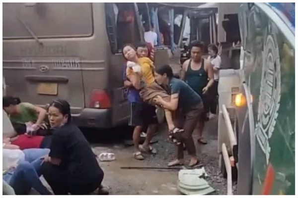 Đây là xe khách chở công nhân công ty nhà máy may Minh Anh đi làm. Lực tông của xe đầu kéo rất mạnh khiến xe chở khách văng ra, nhiều người bị thương, kêu cứu thảm thiết.