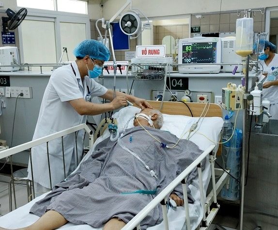 Bệnh nhân Đào Gia T. (nam, 70 tuổi) trong tình trạng thở máy, liệt cơ hô hấp vào ngày 1/9/2020. (Ảnh: bachmai.gov.vn)