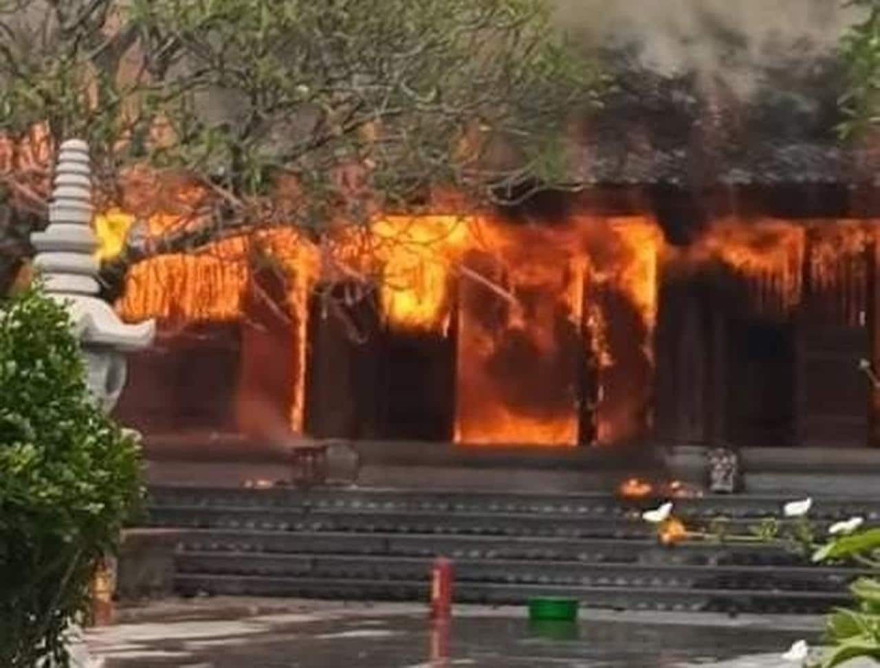 Nhận tin báo, hàng chục chiến sĩ đến hiện trường. Đến khoảng 11h đám cháy được dập tắt. Toàn bộ kiến trúc bằng gỗ và nhiều vật dụng có lịch sử hàng trăm năm cháy rụi.
