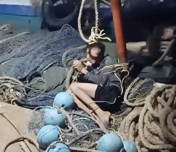 Trên tàu cá mang số hiệu của tỉnh Bến Tre, ngư dân Th. kể anh tận mắt chứng kiến tài công Tr. lấy dây trói tay 1 ngư dân treo lên rồi dùng mã tấu tự chế chém vào vai, đầu người này nhiều nhát, sau đó đẩy xuống biển…