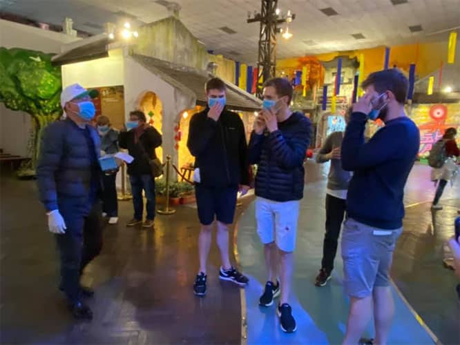 Người nước ngoài điều trị viêm phổi Vũ Hán tại Việt Nam phải trả phí điều trị, không phải trả chi phí cách ly và xét nghiệm. Trong ảnh: cung cấp khẩu trang miễn phí cho du khách nước ngoài trong khu bảo tồn di sản. (Ảnh: hanoimoi.com.vn)