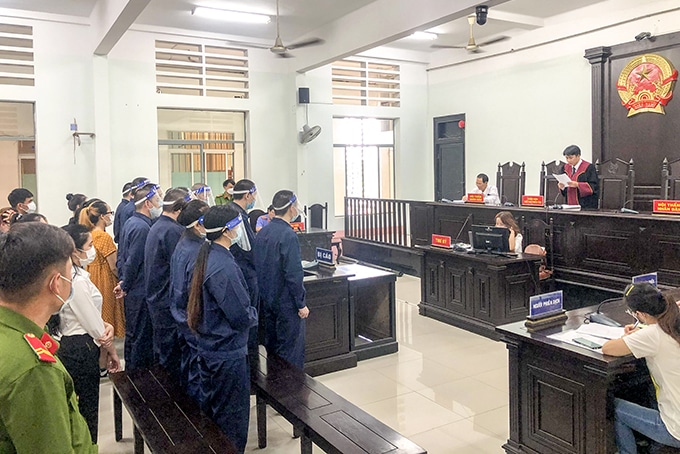 - Chín bị cáo gồm: Lê Nhật Linh (SN 1999), Trần Thị Phước Hòa (SN 2000), Hồ Thị Mỹ Luy (SN 2000), Lê Thị Thanh Truyền (SN 1999), Trương Vân Anh (SN 2000), Lê Mai Ánh Thiên (SN 1996), Nguyễn Thị Bích Thuận (SN 1997), Huỳnh Văn Toản (SN 1998) và Nguyễn Thị Thảo (SN 1990): cùng mức 2 năm 3 tháng tù;
