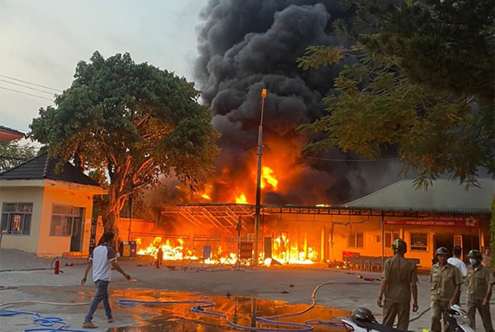 Cụ thể, khoảng 18h chiều ngày 9/3, khi đưa phương tiện vi phạm về bãi tạm giữ trong khuôn viên công an huyện, một công an hút xăng ra khỏi xe để đưa vào bãi bảo quản. Lúc này, một công an nghĩa vụ đi qua đã ném điếu thuốc vừa hút xuống gần đó. Gió thổi tàn thuốc bay ngược vào vị trí đang hút xăng, khiến lửa bén, lan ra xung quanh. Bãi xe bốc cháy dữ dội sau chỉ sau ít phút.