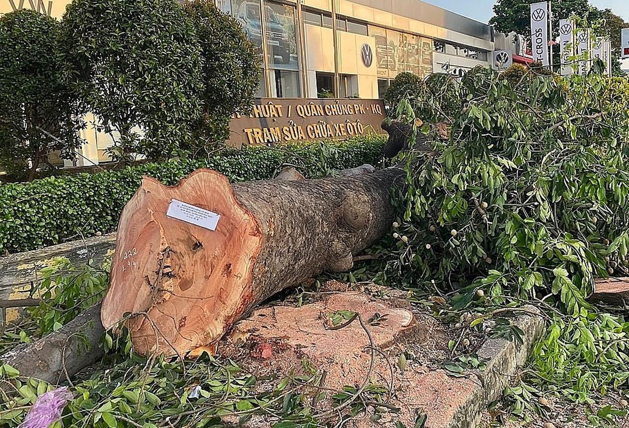 Cây cổ thụ bị đốn hạ là hàng cây xà cừ có đường kính từ 50-80 cm, cao 30 m với tán lá rộng.