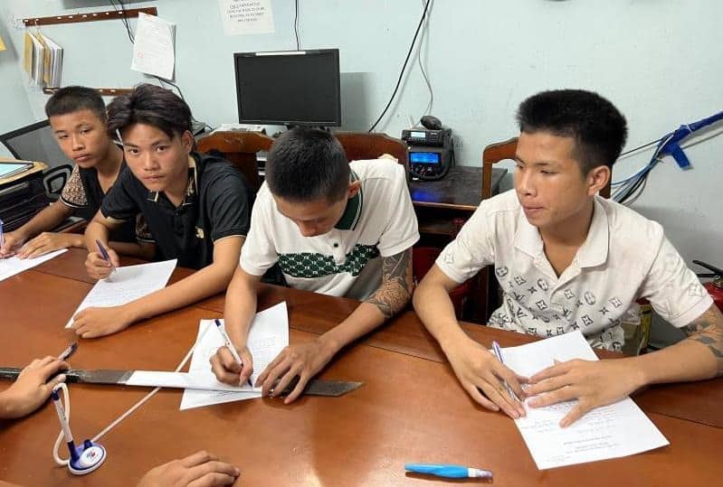 Lúc này, tổ tuần tra liền triển khai lực lượng, áp chế và mời các nghi phạm này về trụ sở công an xã làm việc.
