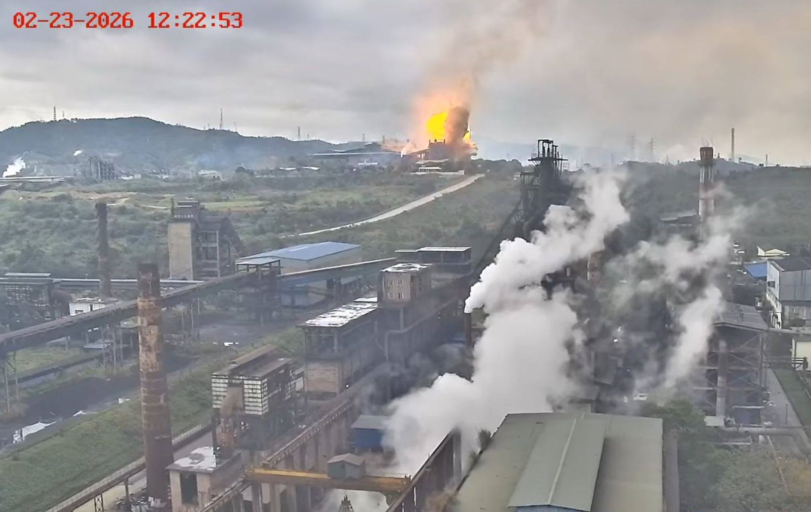 Theo hình ảnh trích xuất từ camera an ninh, sự việc được ghi nhận xảy ra vào 12h20 ngày 23/2. Sau tiếng nổ lớn, mặt đất rung lắc dữ dội, cột lửa lớn bốc lên, hình thành cột khói lớn hình nấm bốc cao hàng trăm mét. Tất cả diễn ra trong khoảng 15 giây.