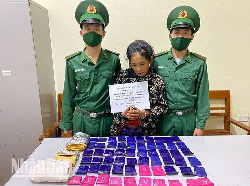 Nghi phạm Dừ Thị Chư bị Bộ đội Biên phòng tỉnh Sơn La bắt quả tang khi đang vận chuyển 12.000 viên ma túy tổng hợp.