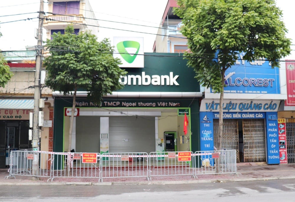 Trụ sở ngân hàng Vietcombank (số 609 đường Lê Thanh Nghị) phải phong tỏa sau khi một nữ giao dịch viên nhiễm virus Vũ Hán, chiều 18/2/2021. (Ảnh: Thành Đông ngày mới/Facebook)