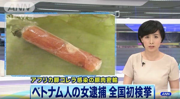 Du học sinh Phương Linh đã mang tổng cộng 350 thanh nem chua nặng 10kg và 360 quả trứng vịt lộn nặng 25kg, nhập cảnh vào Nhật Bản ngày 13/6. Số thực phẩm này bị bộ phận vệ sinh an toàn thực phẩm sân bay phát hiện, khám xét và đưa đi xét nghiệm. Kết quả xét nghiệm cho thấy số thịt lợn mang theo bị nhiễm khuẩn dịch tả lợn châu Phi.