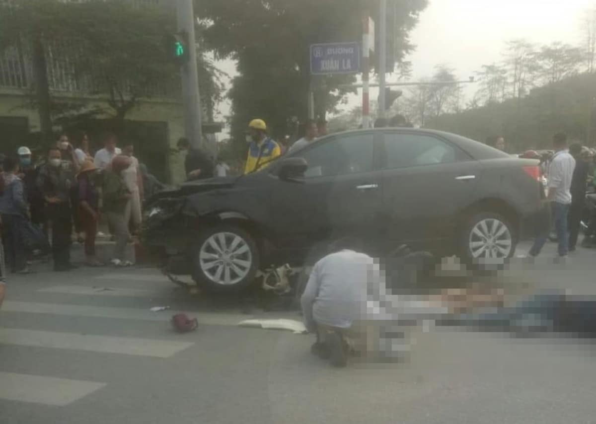 Tại hiện trường, ô tô Kia Forte mang BKS 29A-083.XX đang đè lên một xe máy tại góc ngã tư Võ Chí Công, theo hướng về Xuân La. Có ít nhất 16 chiếc xe máy, xe đạp điện khác nằm ngổn ngang giữa ngã tư, nhiều xe hư hỏng nặng. Nhiều người bị thương nằm tại hiện trường đang được lực lượng y tế sơ cứu.