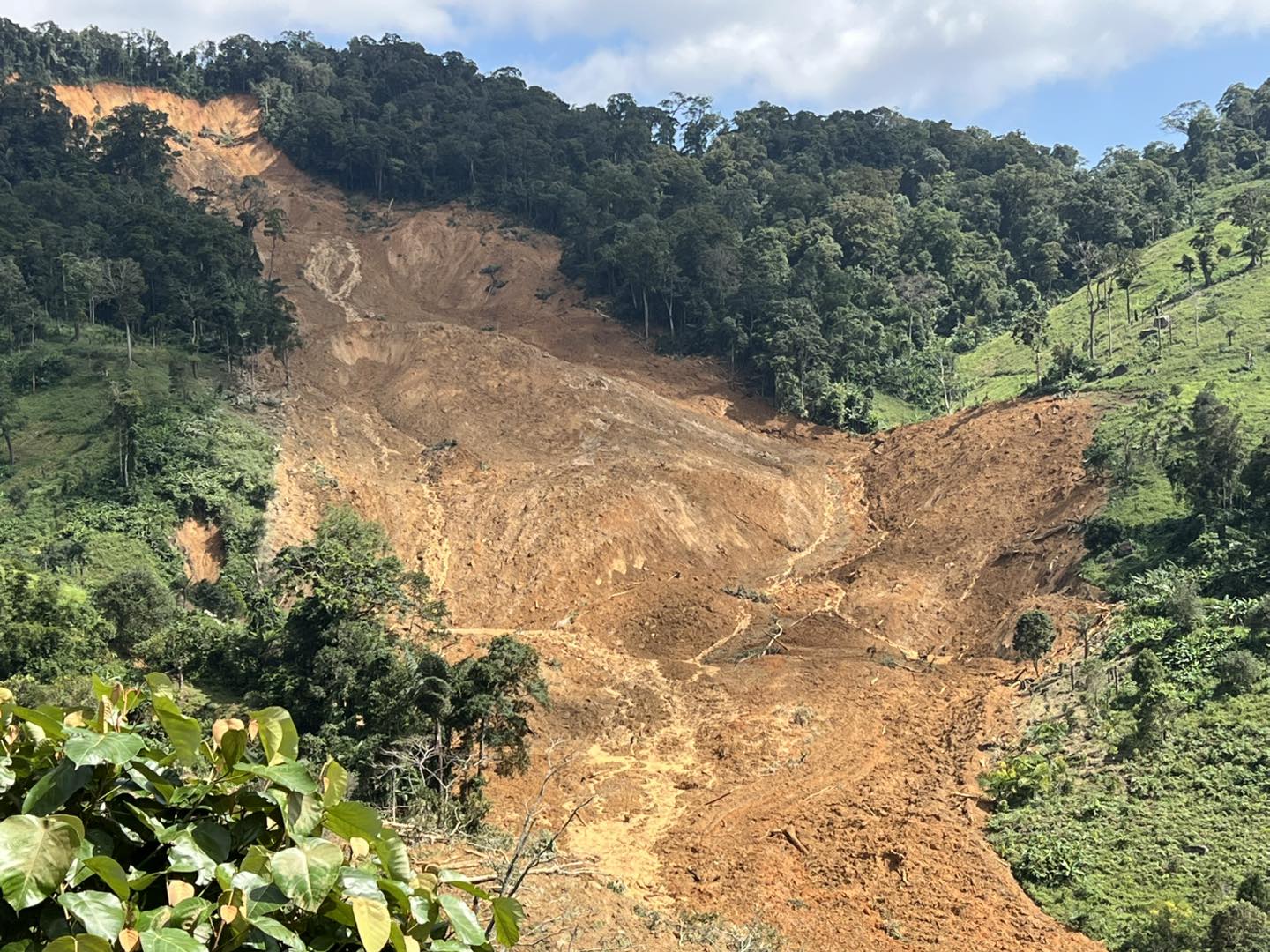 Trước đó, vào khoảng 9h20 ngày 14/11, giữa thời điểm trời nắng, gần như nguyên một quả đồi thuộc khu rừng tự nhiên bất ngờ đổ sập, sạt lở, kéo theo khối lượng lớn đất đá tràn xuống khu vực dân sản xuất.