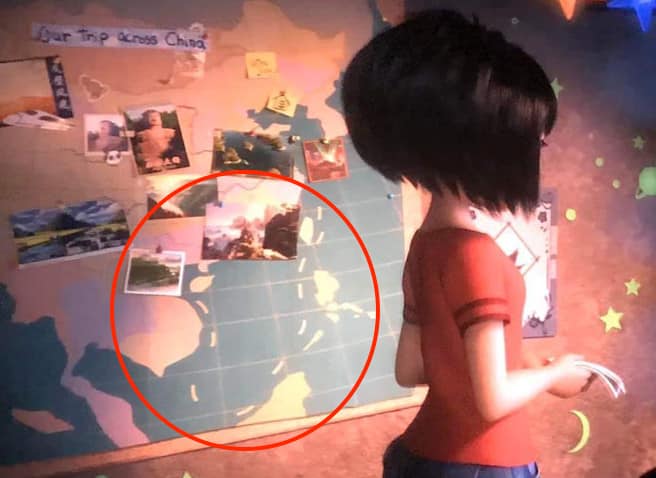 Trong phim, hình bản đồ có ‘đường lưỡi bò’ xuất hiện khá rõ nhiều lần trong phim (4 cảnh phim). Ngay trong phần trailer với phụ đề Việt do CGV phát hành, cũng dễ dàng nhìn ra tấm bản đồ có ‘đường lưỡi bò’ mà nhân vật chính Yi treo trên tường trong căn phòng nhỏ của cô bé.