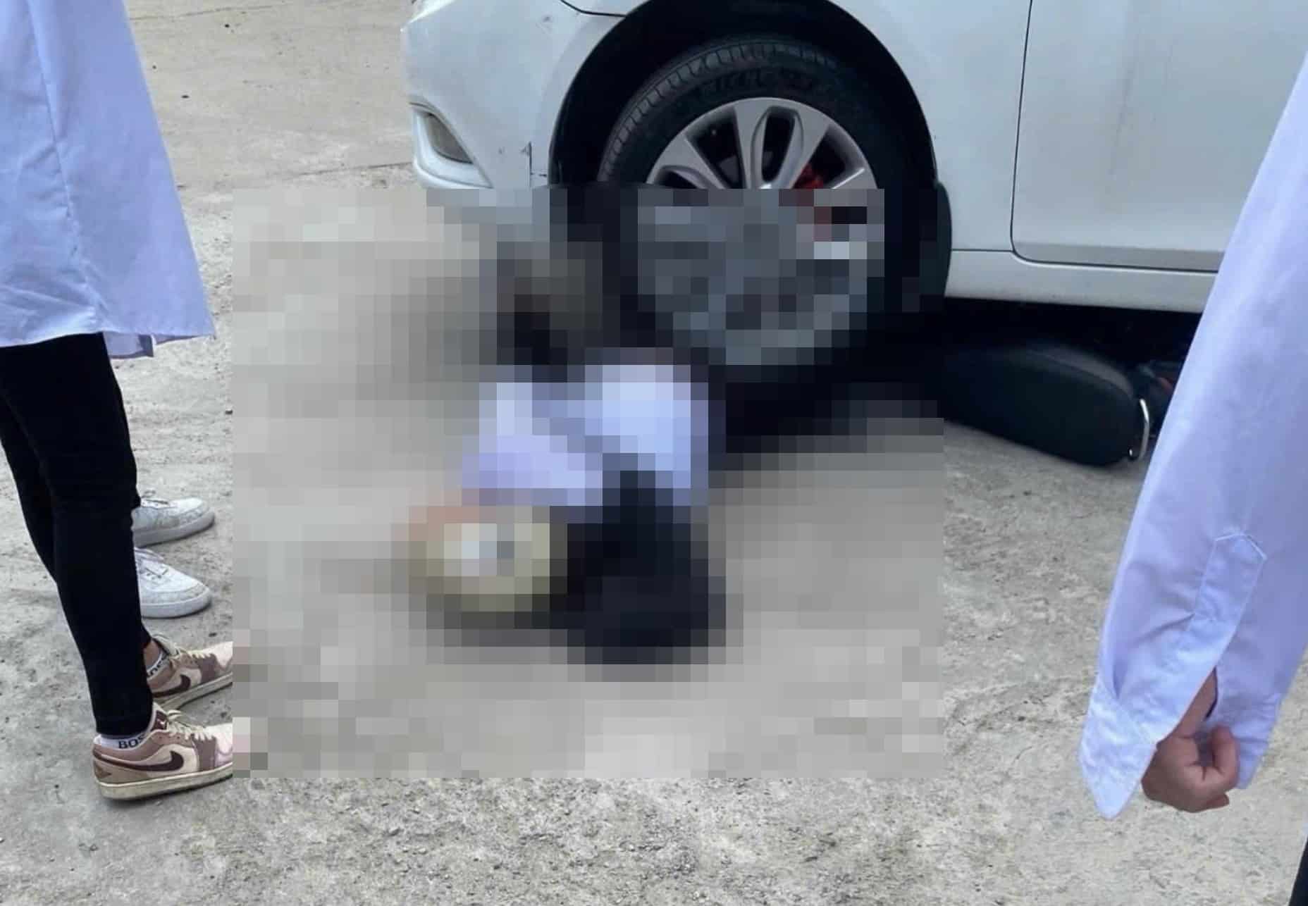 Người phụ nữ lái xe ô tô đi vào sân trường để đón con đã va chạm với xe đạp điện của một học sinh lớp 10. Cú va chạm khiến cả người em học sinh và xe điện mắc kẹt dưới xe ô tô.