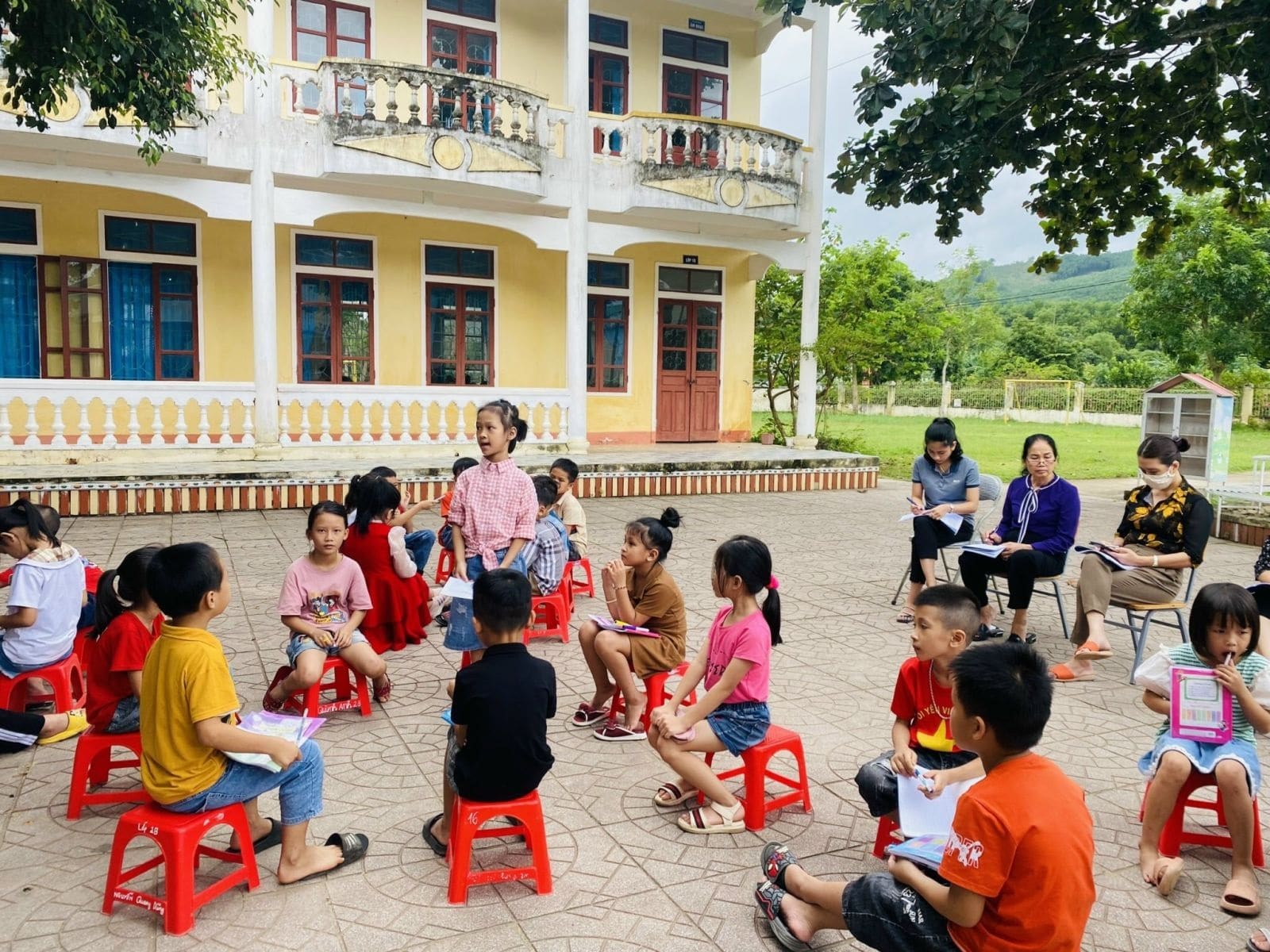 Học sinh trường Tiểu học Sơn Lâm trong một buổi học ngoài trời, chiều 7/9/2022. (Ảnh minh họa: thsonlam.huongson.edu.vn)