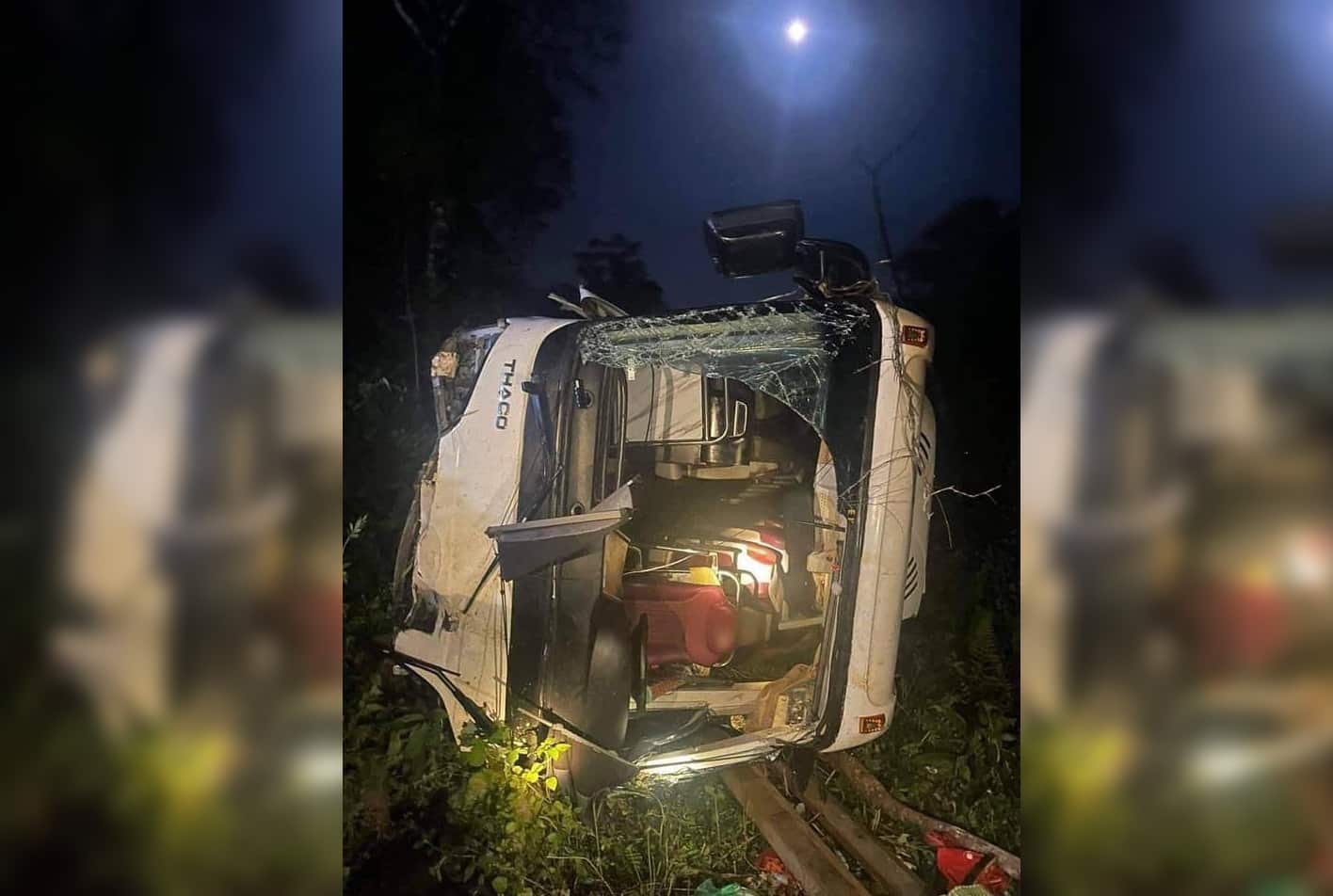 Vụ tai nạn lật xe khách nghiêm trọng tại Phú Thọ khiến 2 người lớn và 1 trẻ em tử vong tại chỗ. (Ảnh: Phú Thọ 24h/Facebook)