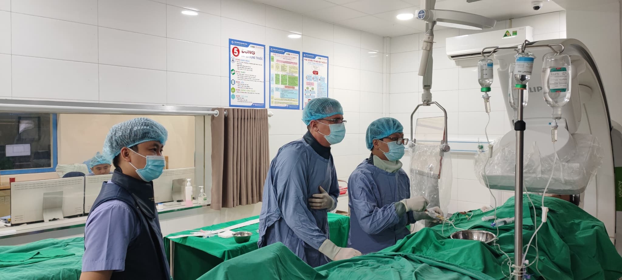 Ngay lập tức, bệnh nhân được các bác sĩ xử trí theo phác đồ chống sốc phản vệ, sử dụng thuốc Adrenalin. Sau khi được cấp cứu và hồi sức tích cực, bệnh nhân qua cơn nguy kịch và được chuyển khoa Hồi sức cấp cứu bệnh viện đa khoa Hùng Vương để tiếp tục điều trị.