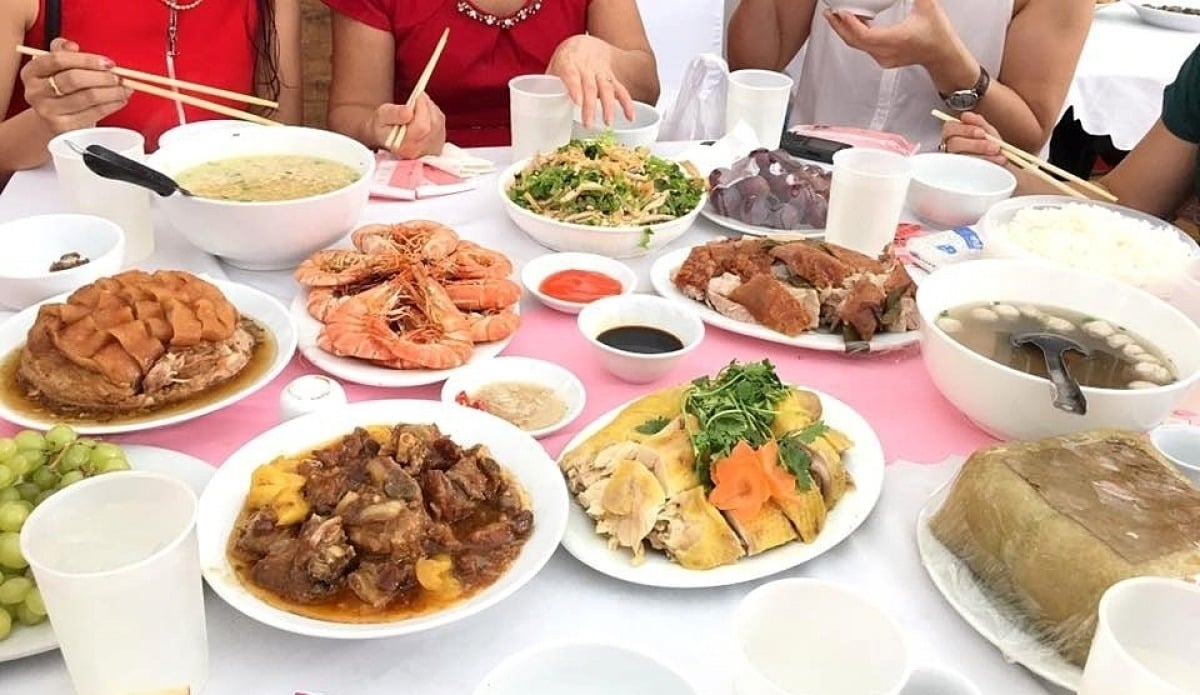 Gia đình anh Mậu đặt thực đơn món ăn ở nhà hàng tiệc cưới L.H do anh Phạm Văn L. (SN 1991, trú tại chòm 5, thôn Hợp Phú, xã Quảng Hợp) là chủ cơ sở, phục vụ, chế biến, gồm các món: Gỏi Hải sản, Mực hấp gừng, Dê Tùng xẻo, Cháo Bồ câu, Tôm hấp dừa, Gà lá chanh, Bánh Khoai môn, Bê thui hấp gừng, Xôi đậu bắp, Sữa chua, bia và nước lọc.