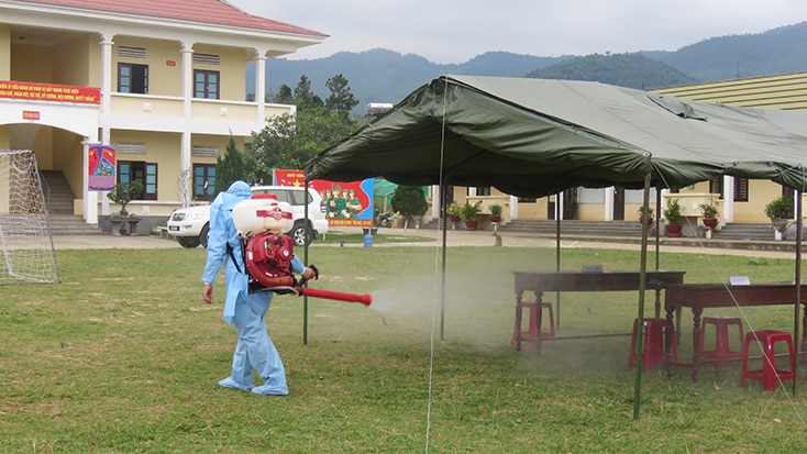 Quảng Bình tăng cường phun khử khuẩn môi trường. (Ảnh: baoquangbinh.vn)