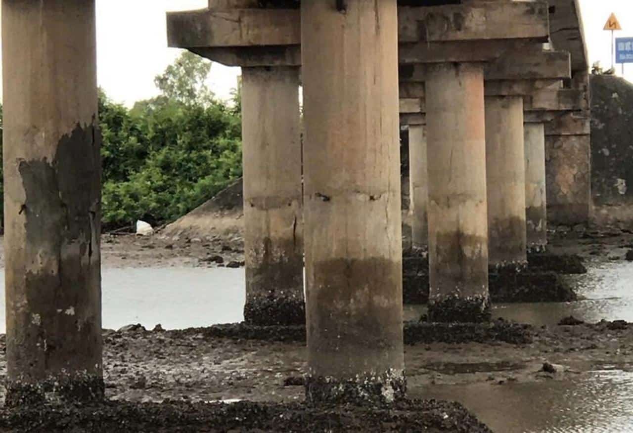 Cầu Sông Thai (Quảng Bình) xuất hiện nhiều vết nứt dọc trụ, nguy cơ sập cầu cao, khiến chính quyền phải cắm biển hạn chế tải trọng xuống 5 tấn.
