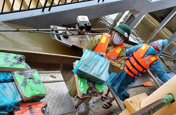 Mì ăn liền và áo phao đang được hỗ trợ cho người dân tại Quảng Bình sau đợt mưa lũ lớn, từ Quỹ dự phòng ứng phó thiên tai. (Ảnh: redcross.org.vn)