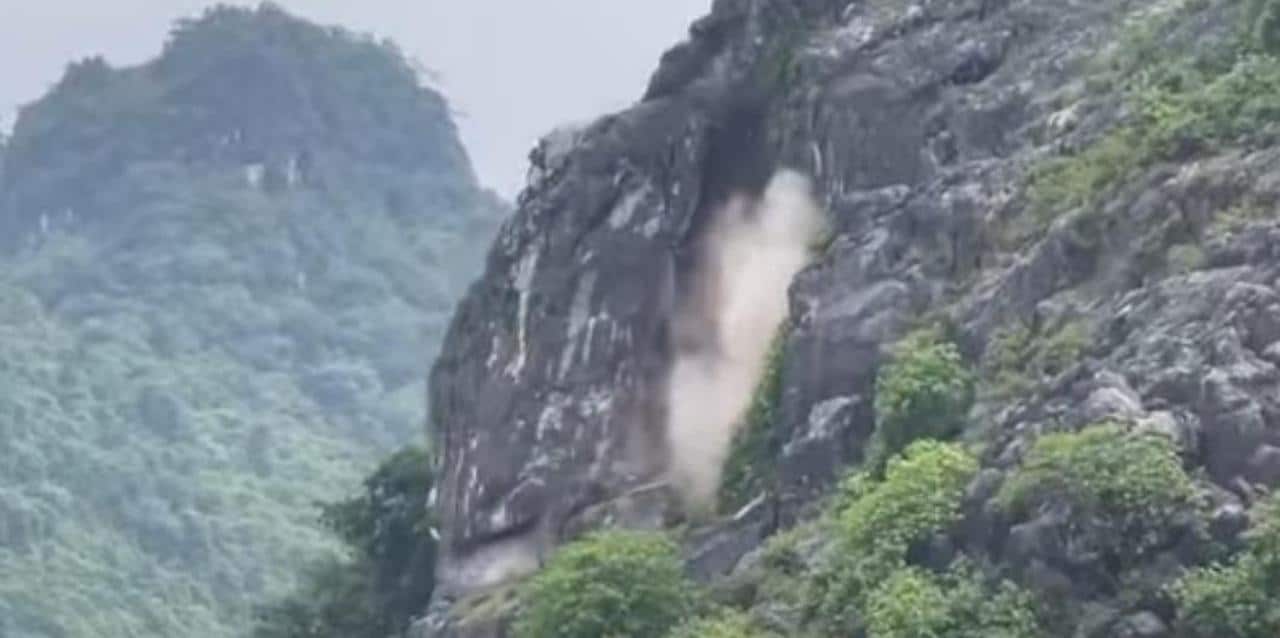Tảng đá khoảng 300 tấn trên một ngọn núi ở thị trấn Phong Nha (huyện Bố Trạch) xuất hiện vết nứt toác đến 0,5m, giới chức tỉnh Quảng Bình đã dùng mìn để phá đá.
