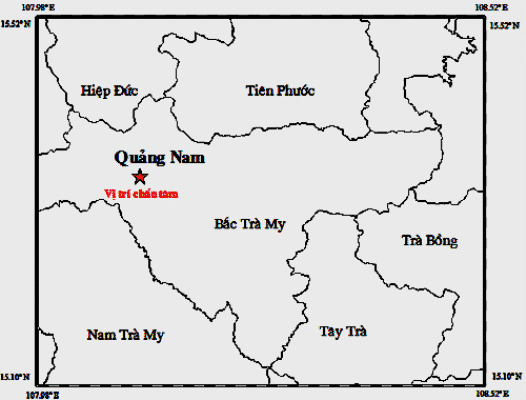 Một trận động đất với cường độ 3,4 độ Richter xảy ra tại khu vực huyện Bắc Trà My (tỉnh Quảng Nam) với độ sâu chấn tiêu khoảng 8 km.