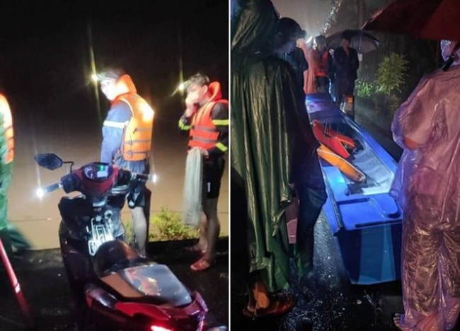 Lực lượng cứu hộ tìm kiếm ông Đ.V.H. - người bị lũ cuốn khi cố cứu một trẻ nhỏ, ở phường Hòa Thuận, TP. Tam Kỳ, Quảng Ngãi, đêm 10/10. (Ảnh: Người dân ghi lại/Hội An/Facebook)