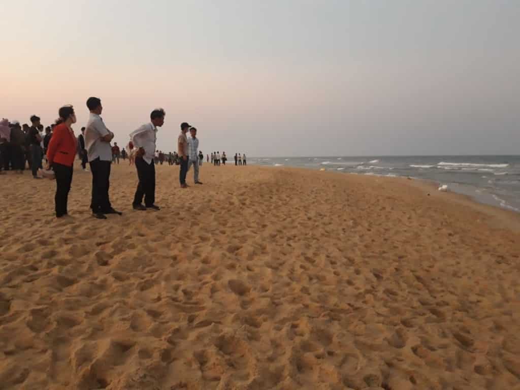 Đến cuối giờ chiều, các em rủ nhau đến khu vực bãi biển xã Bình Minh để tắm và chụp ảnh. Trong lúc xếp hàng chụp ảnh thì sóng lớn ập đến xô ngã và cuốn 8 em xuống biển.