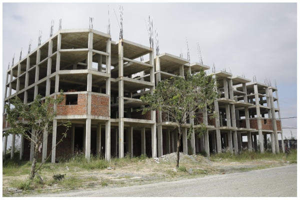 Dự án có khoảng 300 lô đất nền và 6 block chung cư nhưng mới chỉ xây dựng thô 2 chung cư, một chung cư đang đổ sàn rồi bỏ hoang, các khung sắt phơi nắng, phơi mưa đã hoen gỉ.