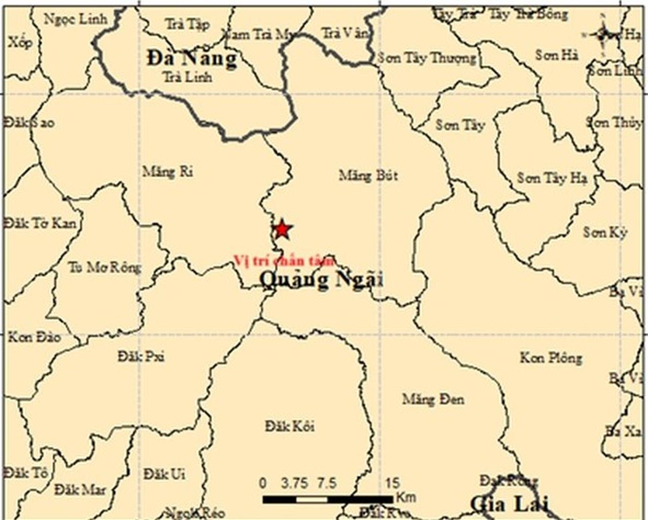Ngày 13/10, Trung tâm Báo tin Động đất và Cảnh báo sóng thần thuộc Viện Các khoa học Trái đất cho biết, từ hơn 1h đến hơn 3h sáng cùng ngày, tỉnh Quảng Ngãi ghi nhận 7 trận động đất liên tiếp tại xã Măng Bút và xã Măng Ri, thuộc khu vực huyện Kon Plông (tỉnh Kon Tum cũ).