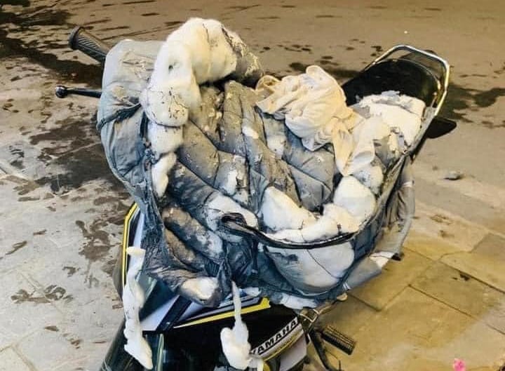 Một áo phao bị cháy nhiều chỗ tại hiện trường vụ việc. (Ảnh: Người dân cung cấp/Quảng Ninh 24/24g News/Facebook)
