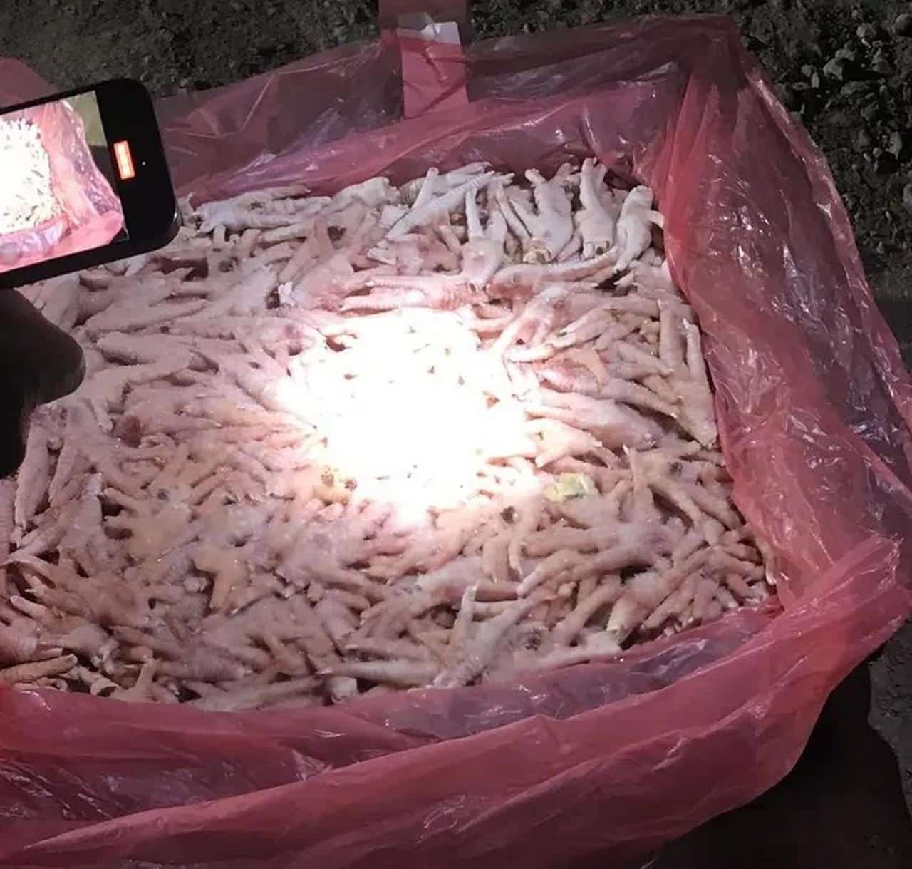 Tại thời điểm kiểm tra, đoàn kiểm tra phát hiện trên phương tiện vận chuyển 2.220 thùng carton chứa gần 25 tấn chân gà đông lạnh. Trên mỗi thùng carton có nhãn gốc bằng chữ nước ngoài không thể hiện thông tin nguồn gốc, xuất xứ, không có nhãn phụ bằng tiếng Việt Nam.