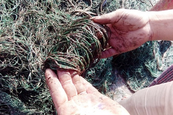 Bùn lạ bám chặt vào lưới đánh cá của ngư dân khiến lưới bị nặng, chìm xuống biển, ngư dân thiệt hại nặng về kinh tế.