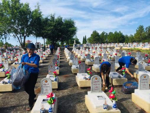 Khu mộ liệt sĩ ở Nghĩa trang Quốc gia Đường 9 trong một lần Chi đoàn Sở Tư pháp Quảng Trị dọn dẹp, dâng hương vào ngày 21/7/2020. (Ảnh: Dương Thị Lê/sotuphapquangtri.gov.vn)