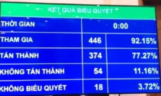 Quy định này có 374/446 đại biểu tán thành (77,27%), số đại biểu không tán thành là 54/446 (11,16%), không biểu quyết là 18/446 (3,72%).
