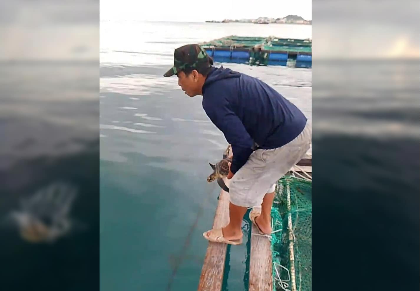 Biết đây là loài nguy cấp, quý hiếm, hai ngư dân đã gỡ rùa ra khỏi túi, bỏ vào ao lồng nuôi chờ phục hồi và báo cho Ban Quản lý Khu bảo tồn biển Lý Sơn và cơ quan liên quan về sự việc.