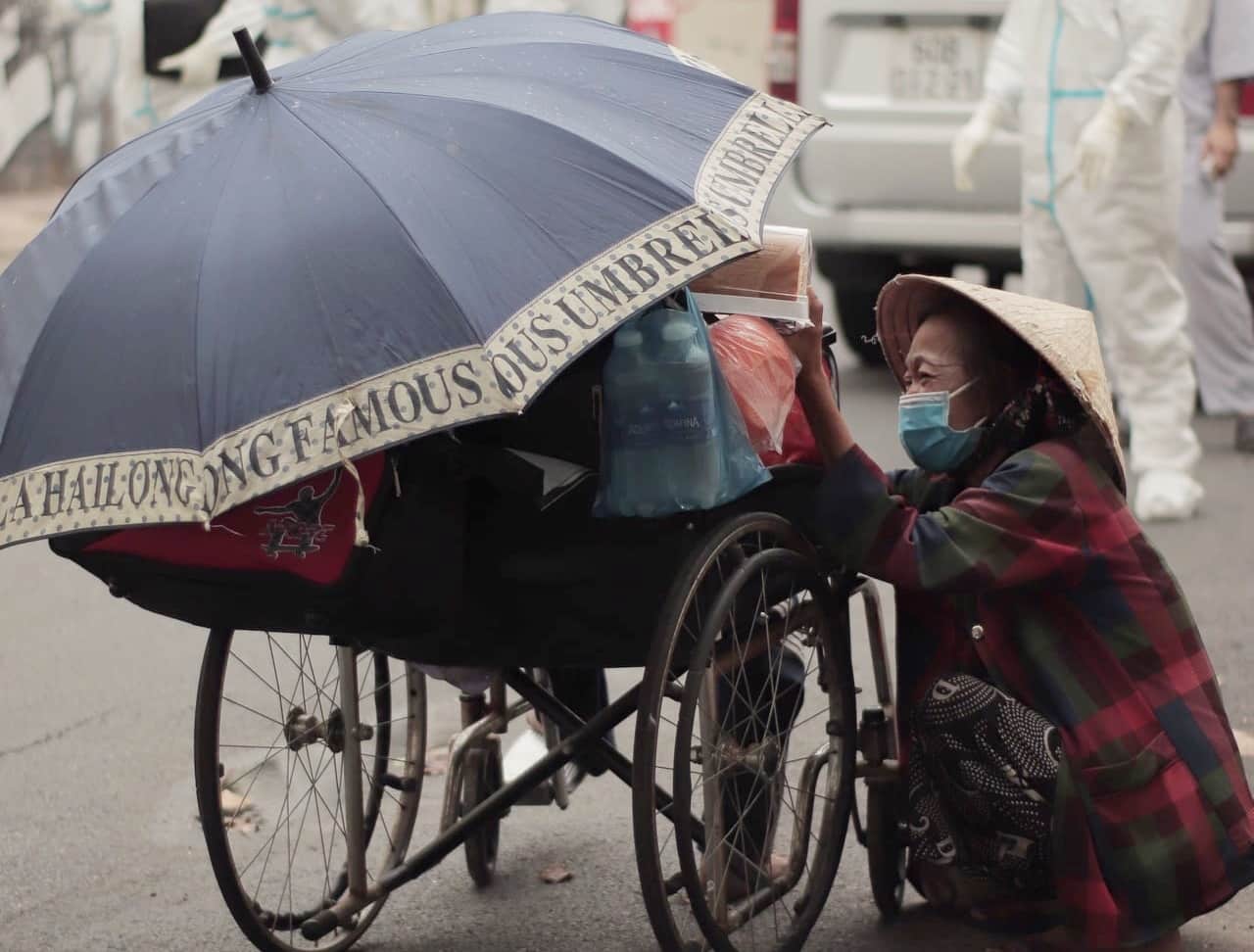 “Bánh ngon lắm nè… ăn đi… Của mấy chị mấy chú cho mình nè, ăn đi…” – tiếng khóc thảm thiết của người vợ bên chồng đã chết gục trên xe lăn. Chiều 20/8, chiều Sài Gòn được báo tin sắp tới “ai ở đâu, ở yên đấy”. Dù tất cả đã gồng gánh nhau qua hơn tám chục ngày qua…